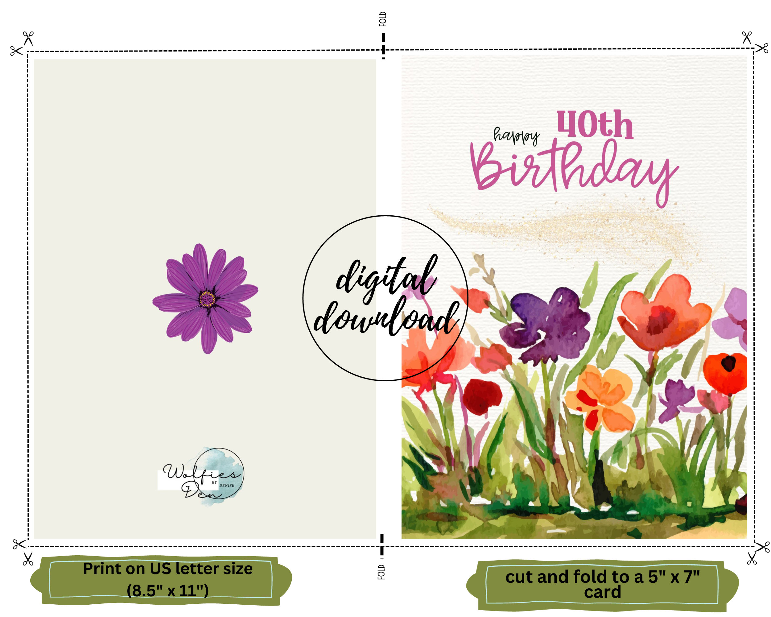 40th Printable Birthday Card Digital Birthday Cards for Friends