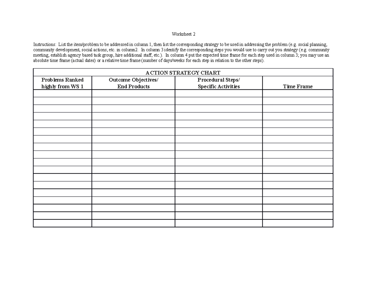 Worksheet 2 Action Strategy Chart Worksheet 2 Instructions: List the