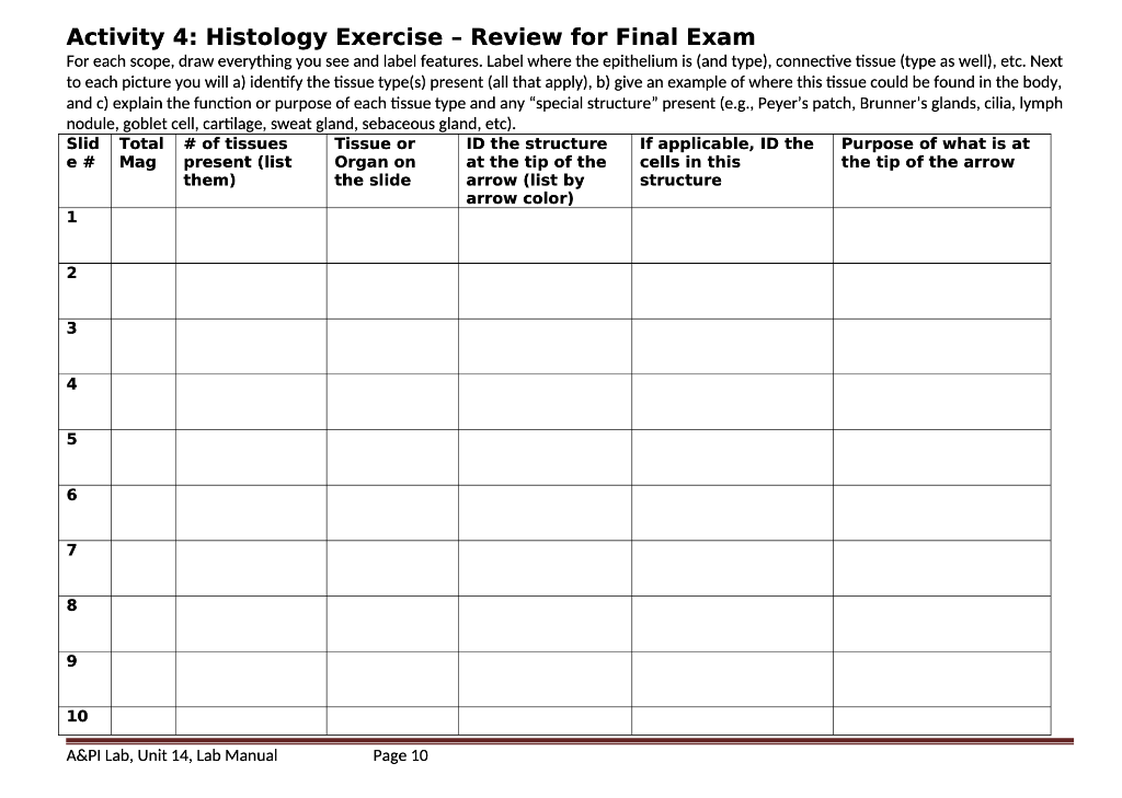 Activity 4: Histology Exercise Review for Final Chegg com