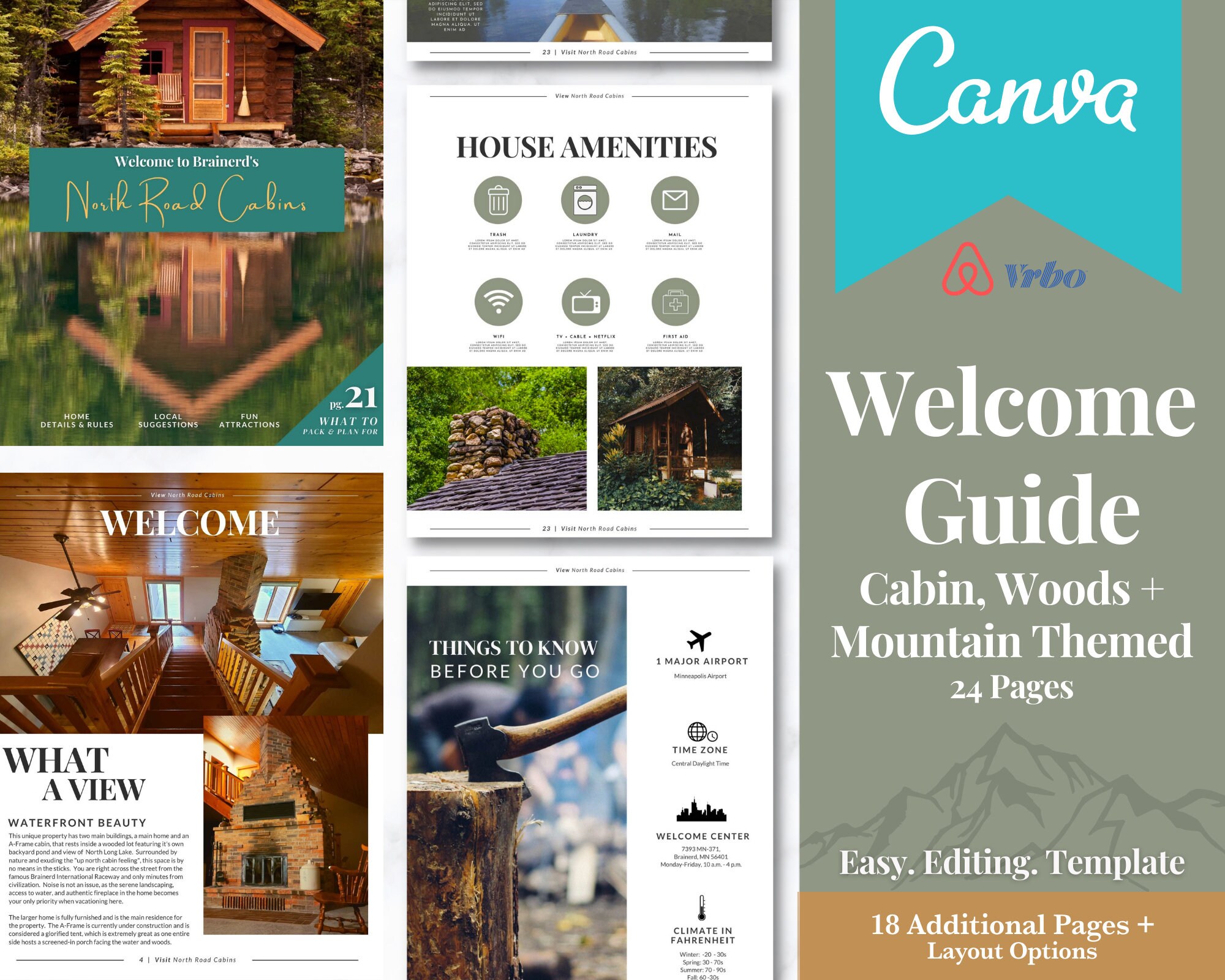 Airbnb Welcome Book Template Mountain Guest Book Editable Canva
