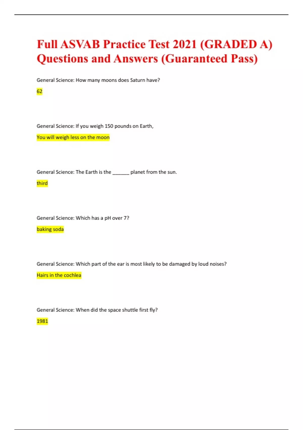 Full asvab practice test 2021 questions and answers graded a Artofit