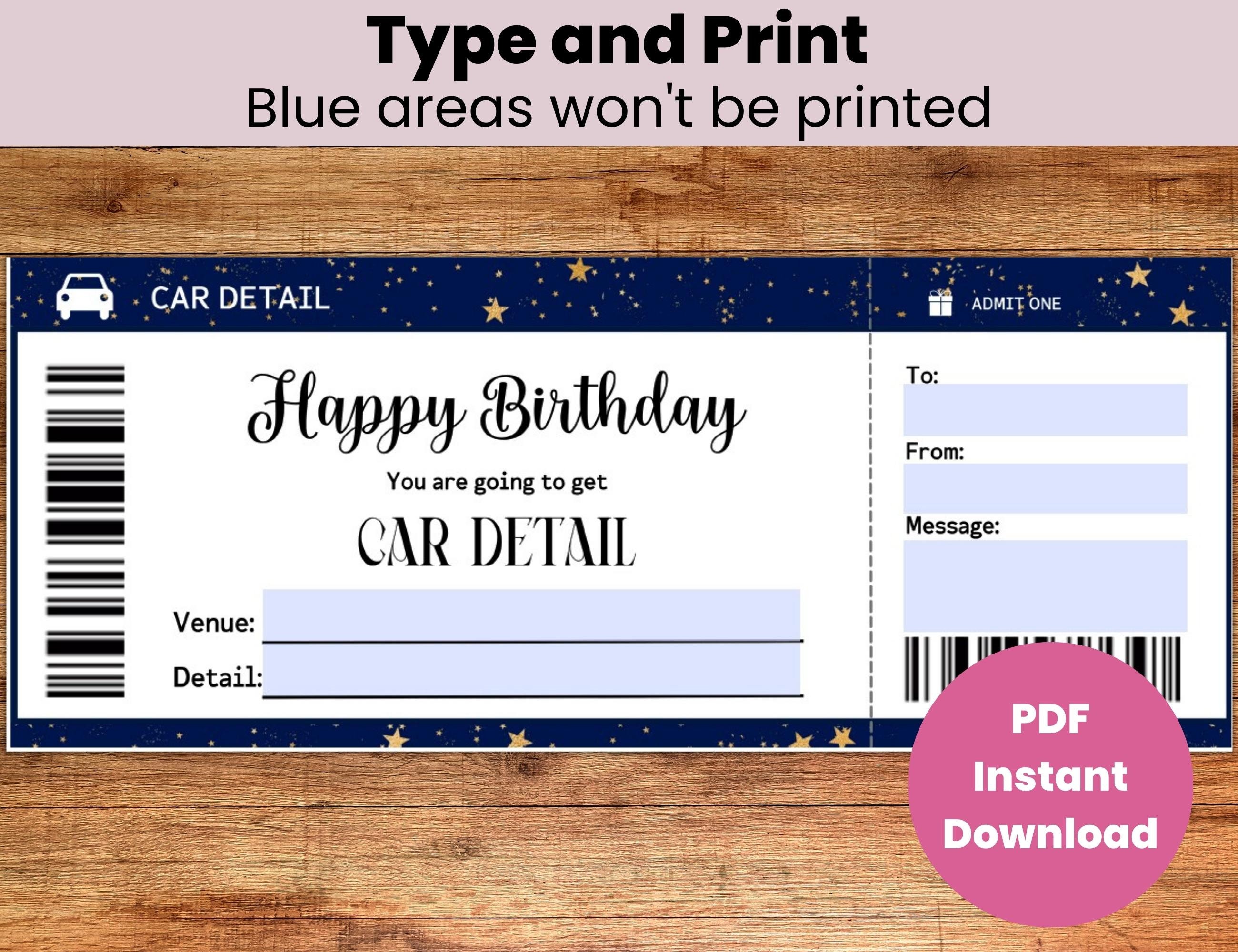 Car Detail Gift Coupon Template Personalized Happy Birthday Car