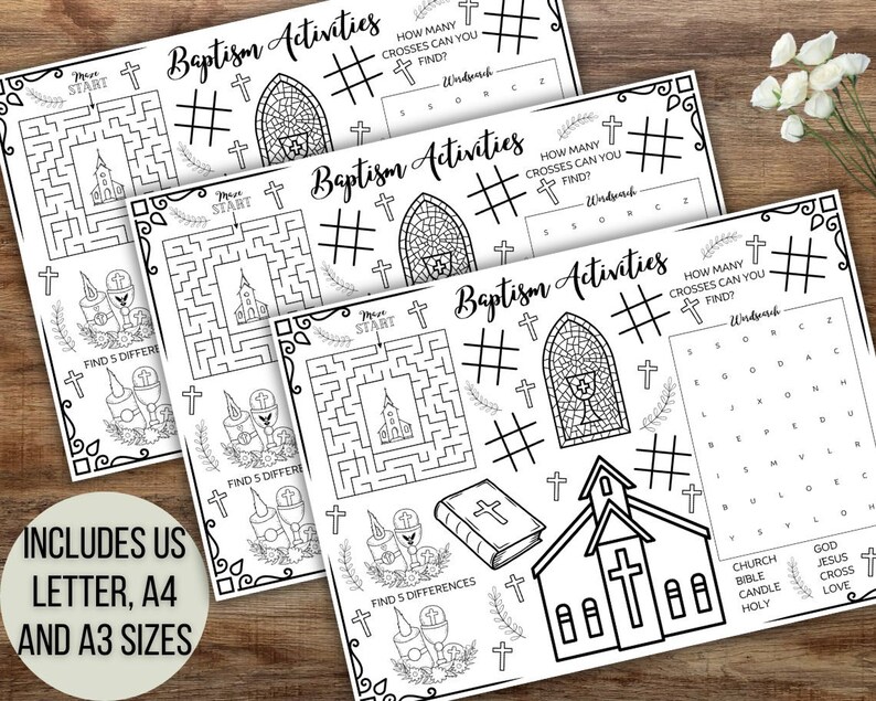 Kids Printable Baptism Activity Mat Kids Baptism Placemat Baptism