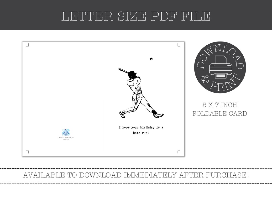 Printable Baseball Birthday Card Homerun Birthday Baseball Fan Instant