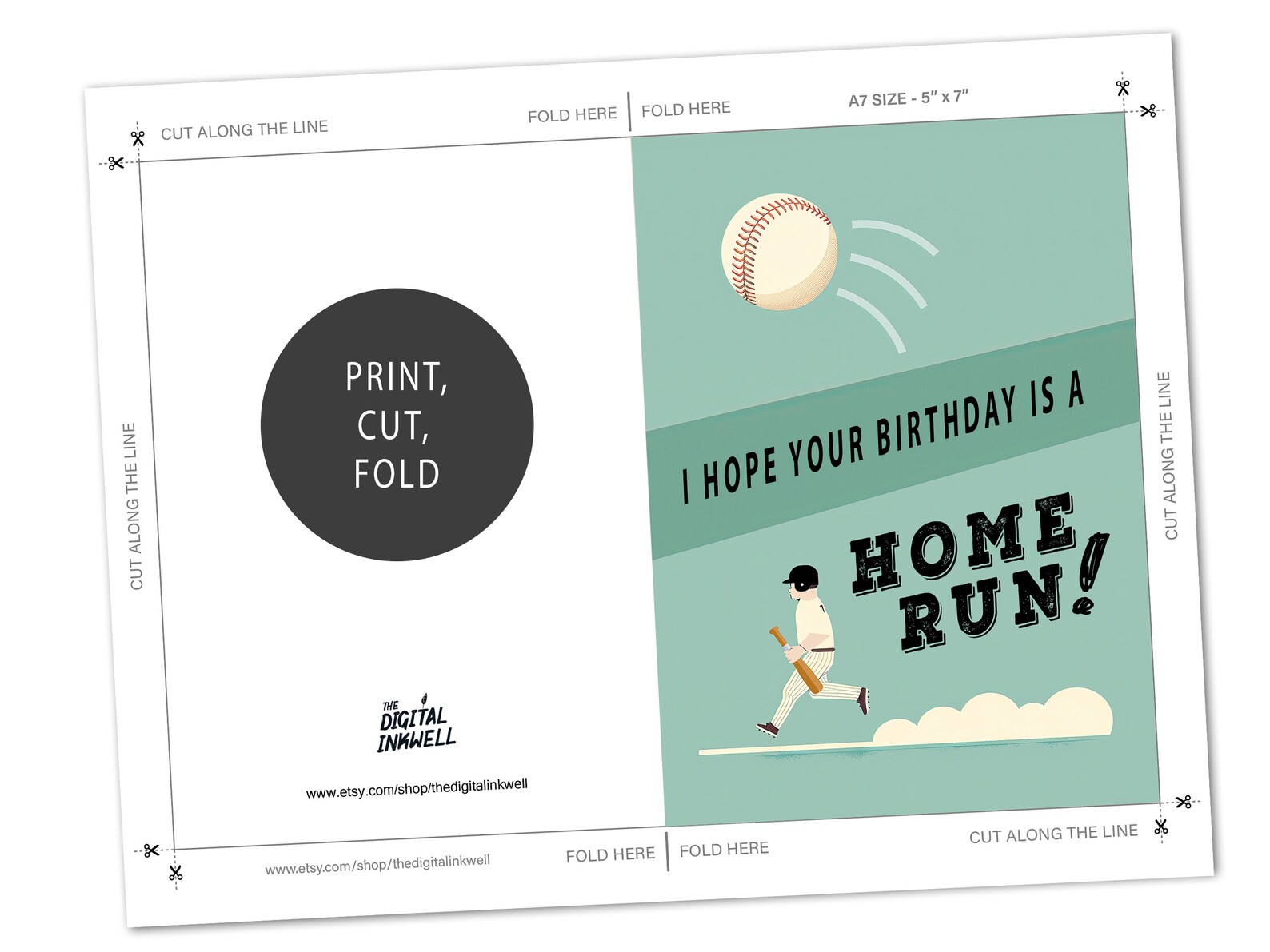 Printable Baseball Birthday Card Instant Download Digital Birthday