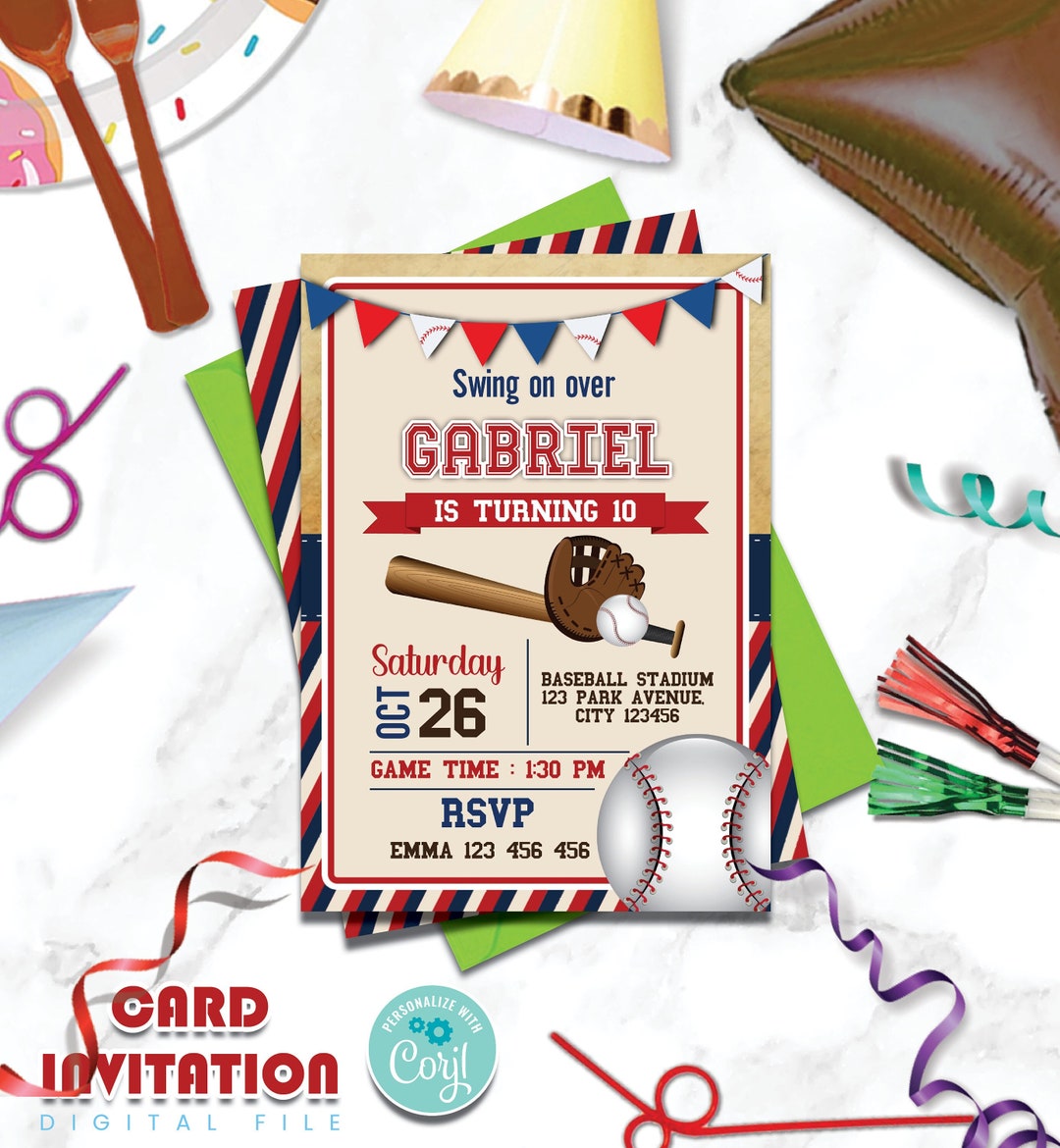 Baseball Invitation Baseball Birthday Invitation Printable Etsy