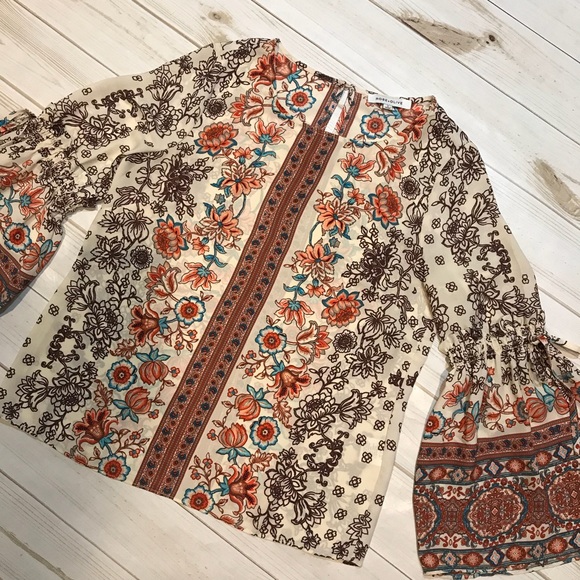 Rose Olive Tops Rose Olive Boho Bell Sleeve Pattern Flower Chic