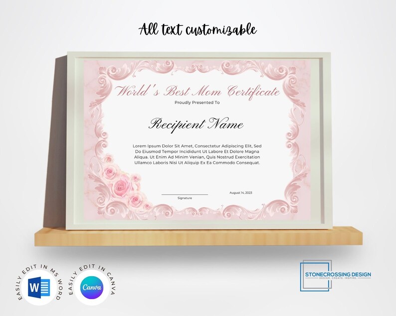Editable Worlds Best Mom Award Certificate Editable Seasonal Best