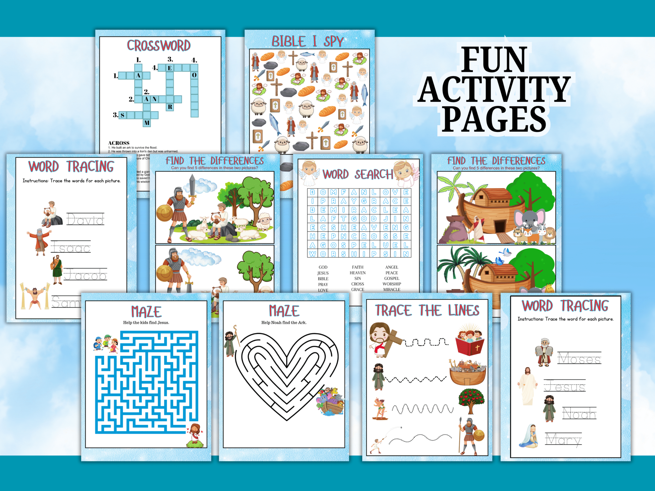 Bible Activity Sheets 30 Page Printable Set with Word Search Bingo