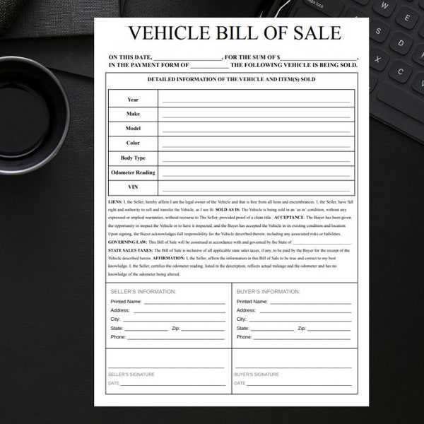 Vehicle Bill of Sale Florida Etsy