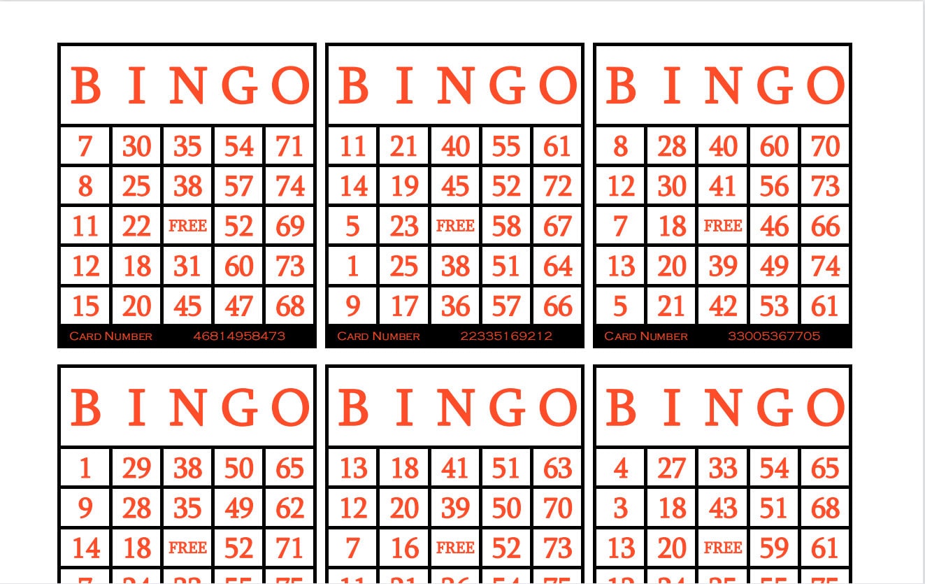 3600 Printable Bingo Cards 6 per Page Large Holidays Parties Games