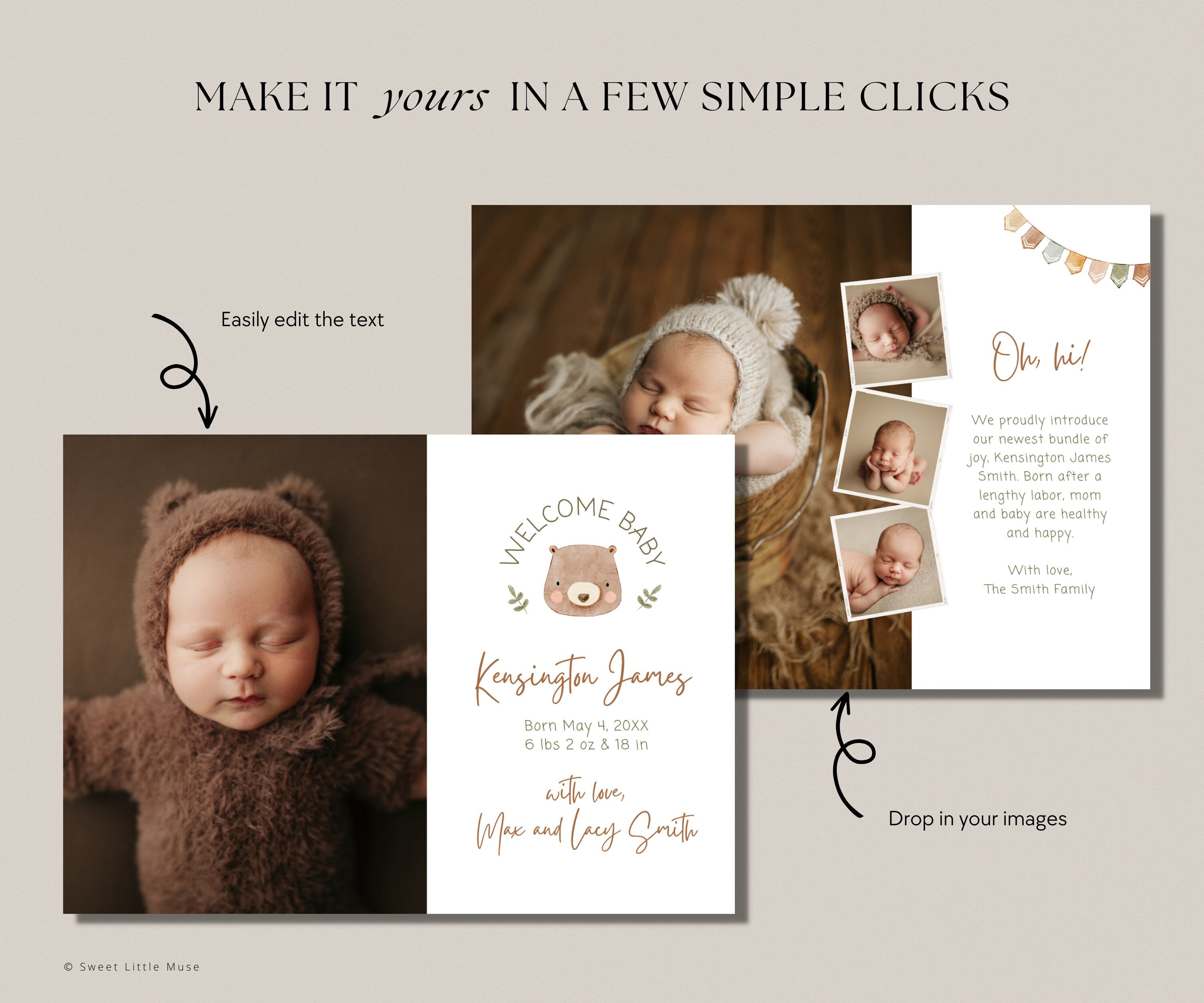 Baby Bear Printable Birth Announcement Template SLM32 Birdesign