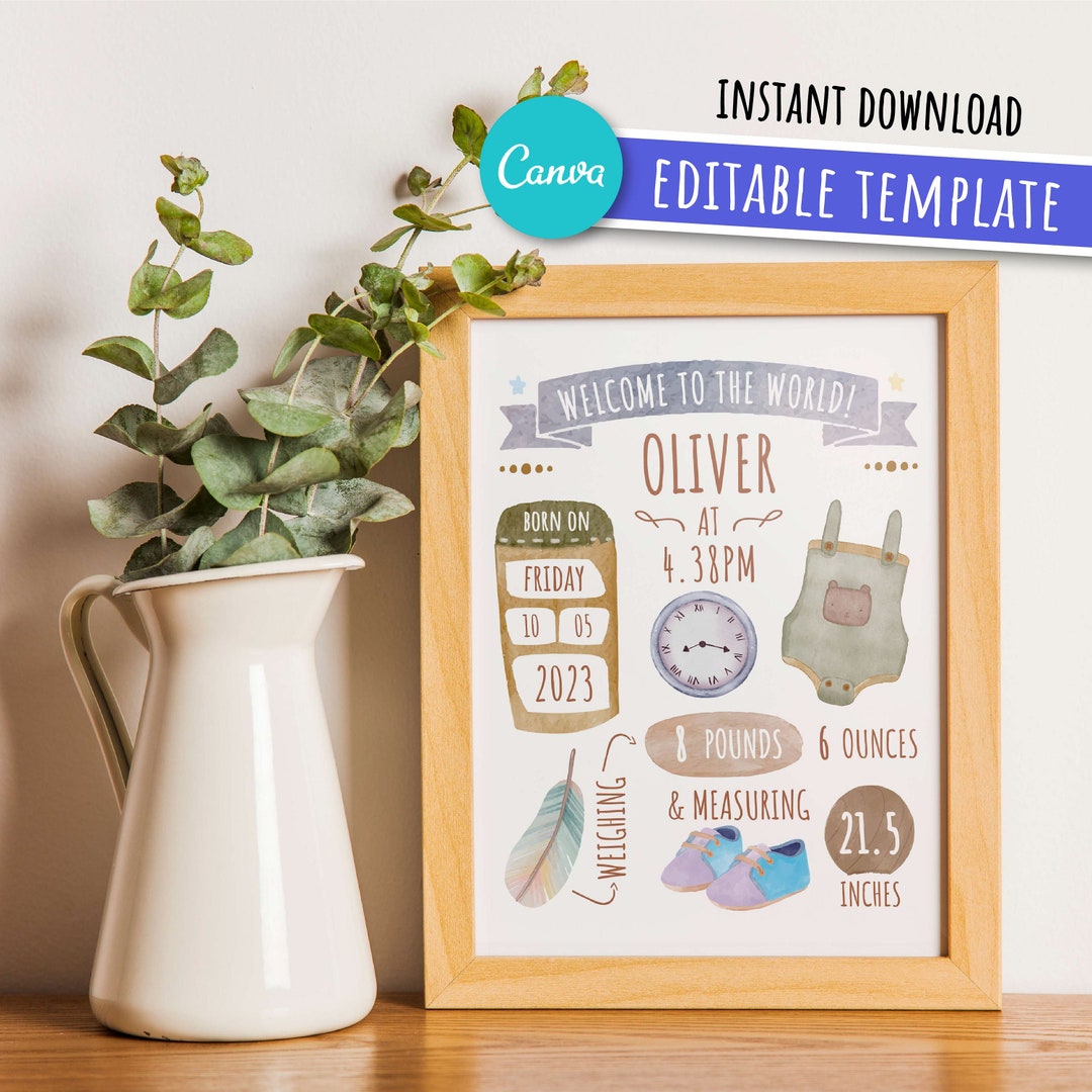 Birth Stats Sign Printable Birth Announcement Template nel 2024