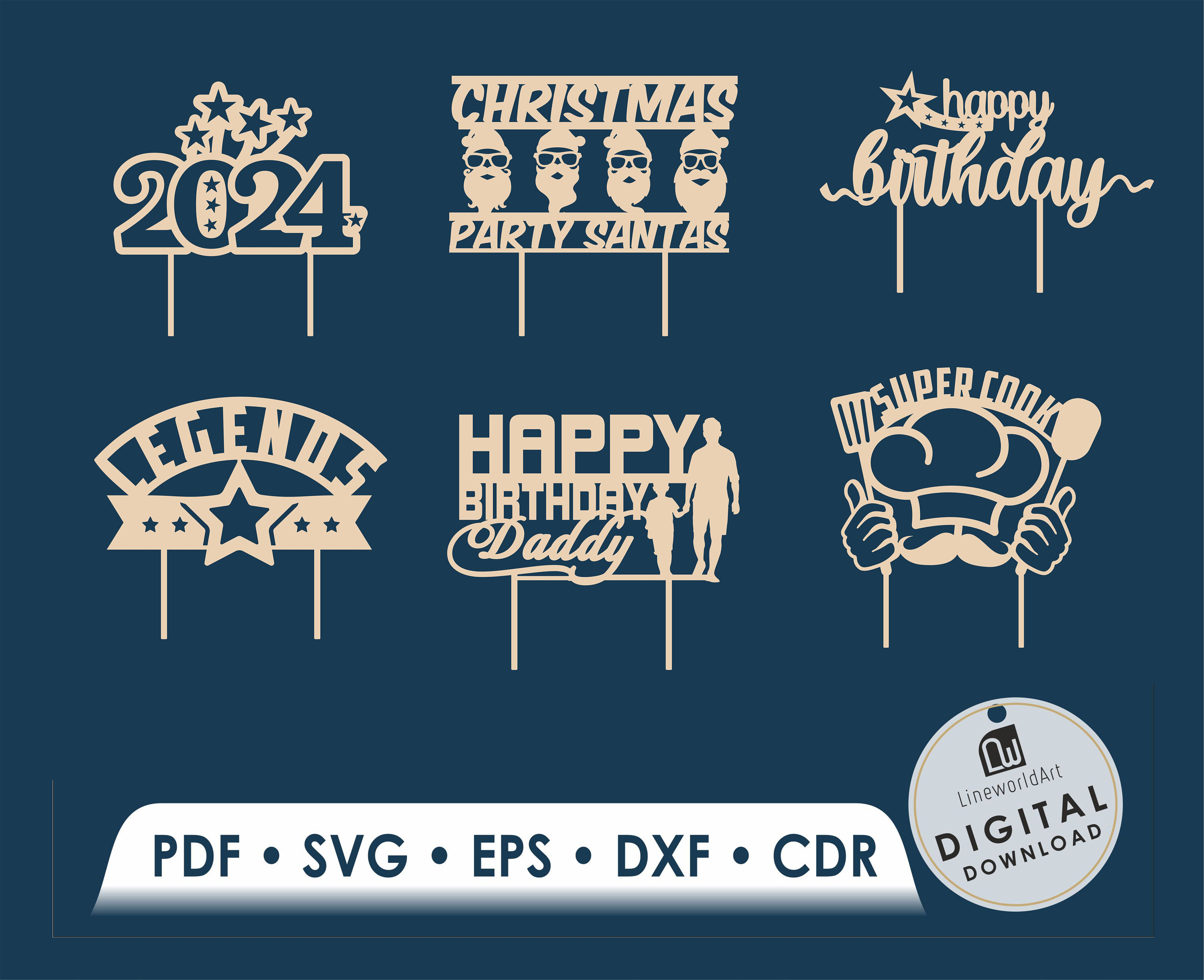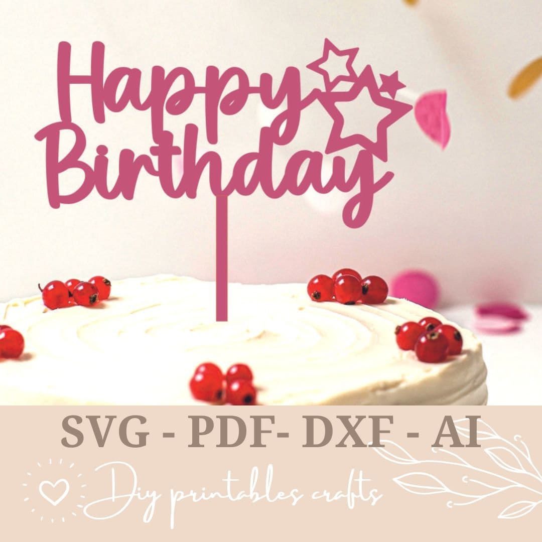 Cake Topper SVG Happy Birthday Cake Topper SVG Cut Files Dxf Ai Pdf