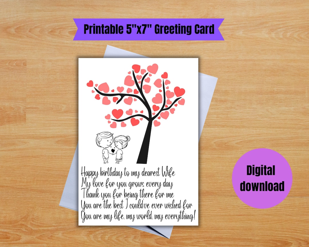 Wife Birthday Card Printable Birthday Card for Wife Instant Etsy