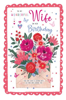 Wife Birthday Card Wonderful Wife Pink Flowers Bouquet Highworth Emporium