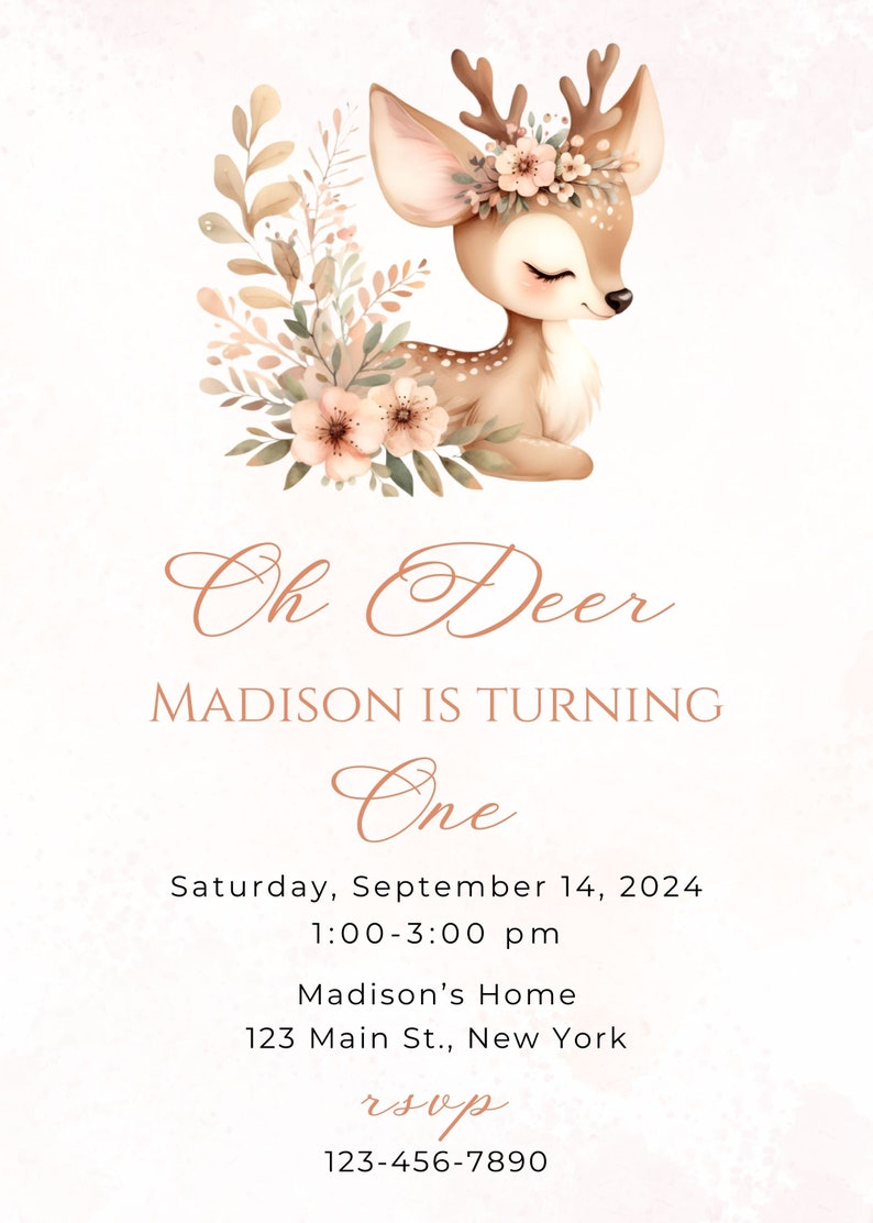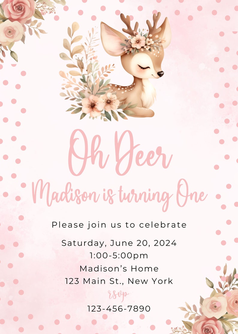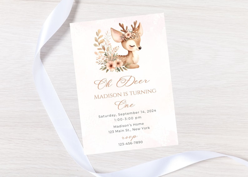 Editable Oh Deer Birthday Invitation Template deer Birthday Invite