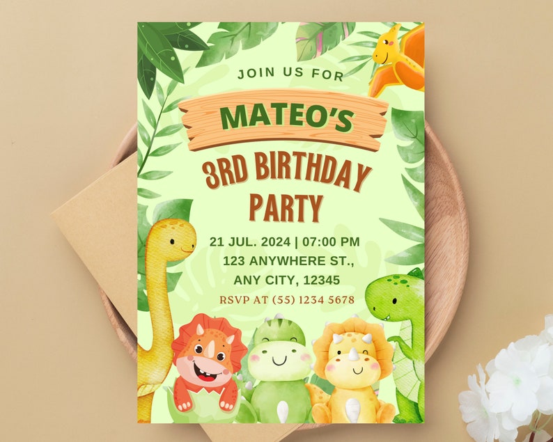 Dinosaur Birthday Party Invitation Dinosaur Printable Birthday Invite