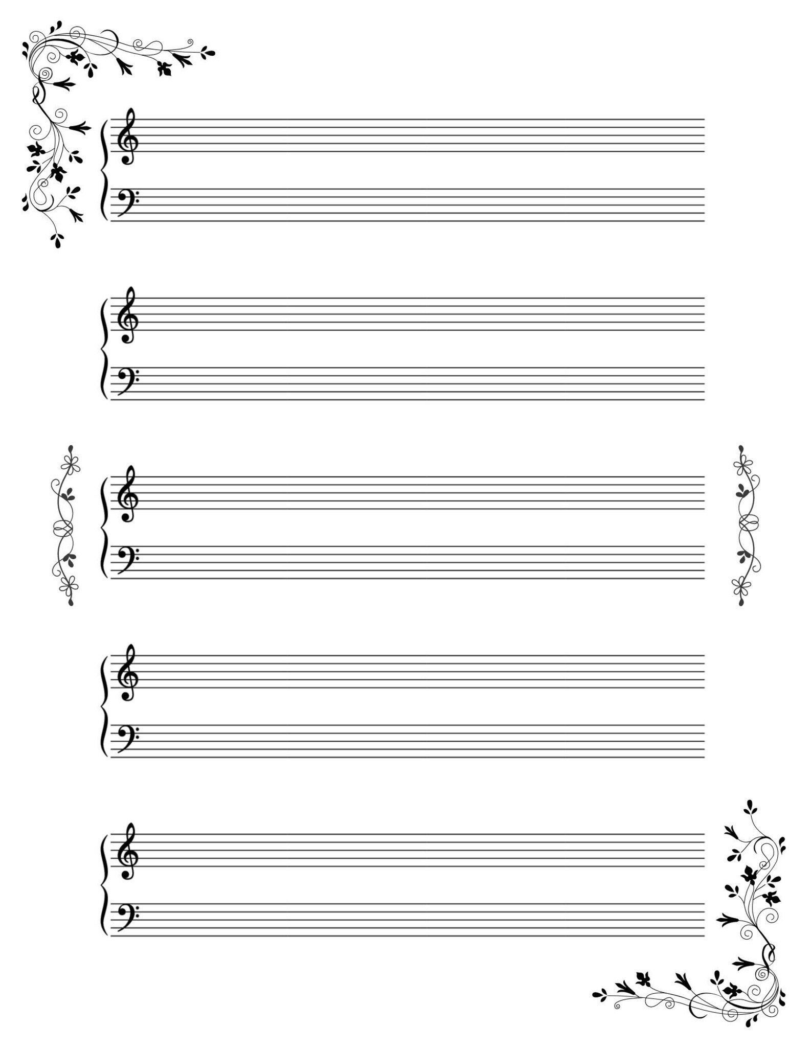 4 pack Printable Blank Piano Sheet Music Floral Music Manuscript