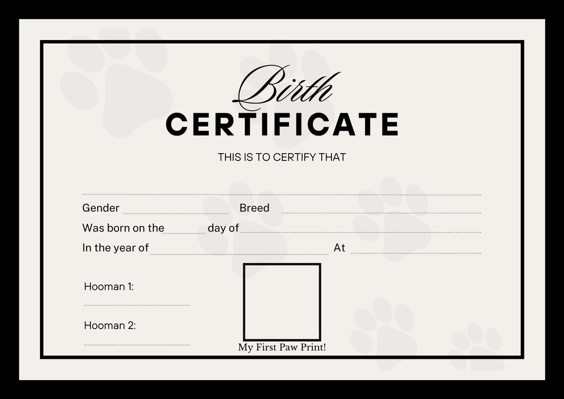 Puppy Birth Certificate Template Editable Printable Paw Certificate of