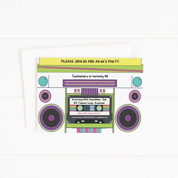 Editable Printable 80 #39 s Cassette Boombox Party Invitation Template