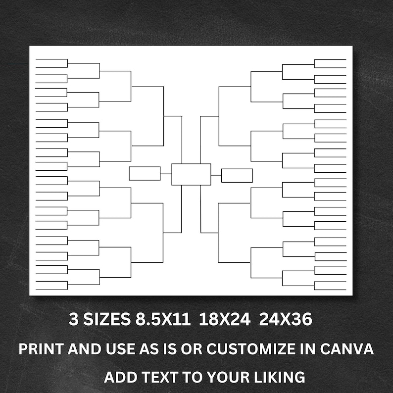 Sports Bracket Printable Tournament Bracket Blanket Bracket Single