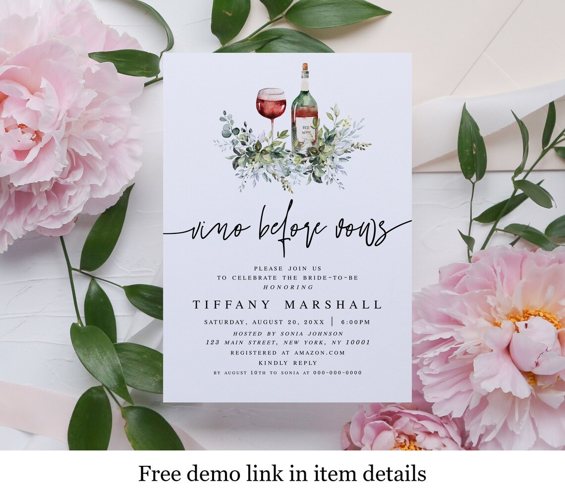 Printable Bridal Luncheon Invitation Template Templett Vino Etsy