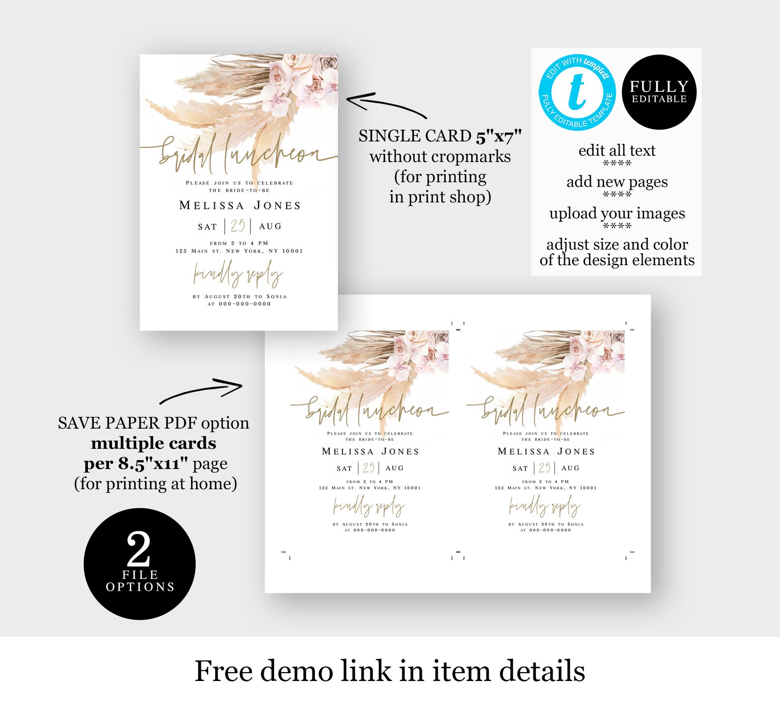 Printable Bridal Luncheon Invitation Template Templett Etsy