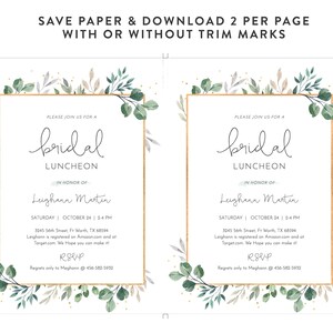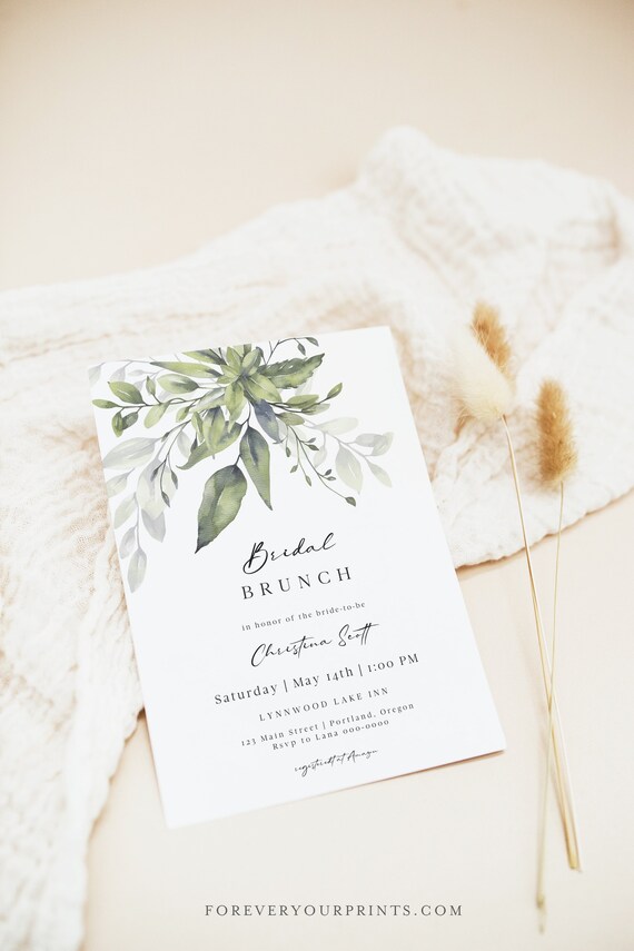 Greenery Bridal Shower Luncheon Invitation Template Editable Bridal