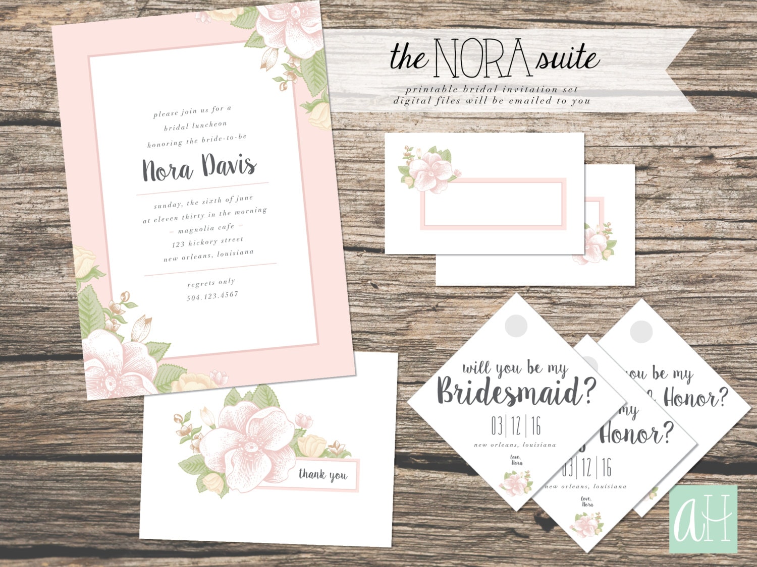 Printable Bridal Luncheon Suite: Floral Invitation Thank You Etsy