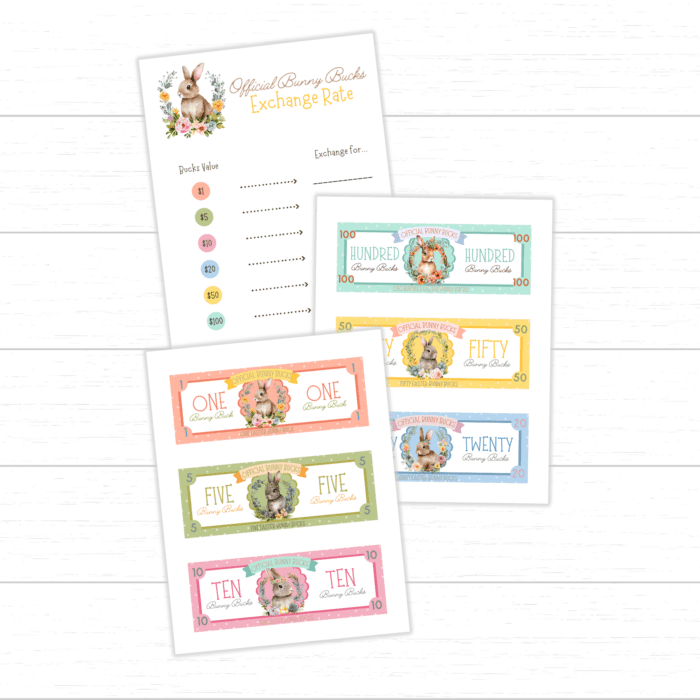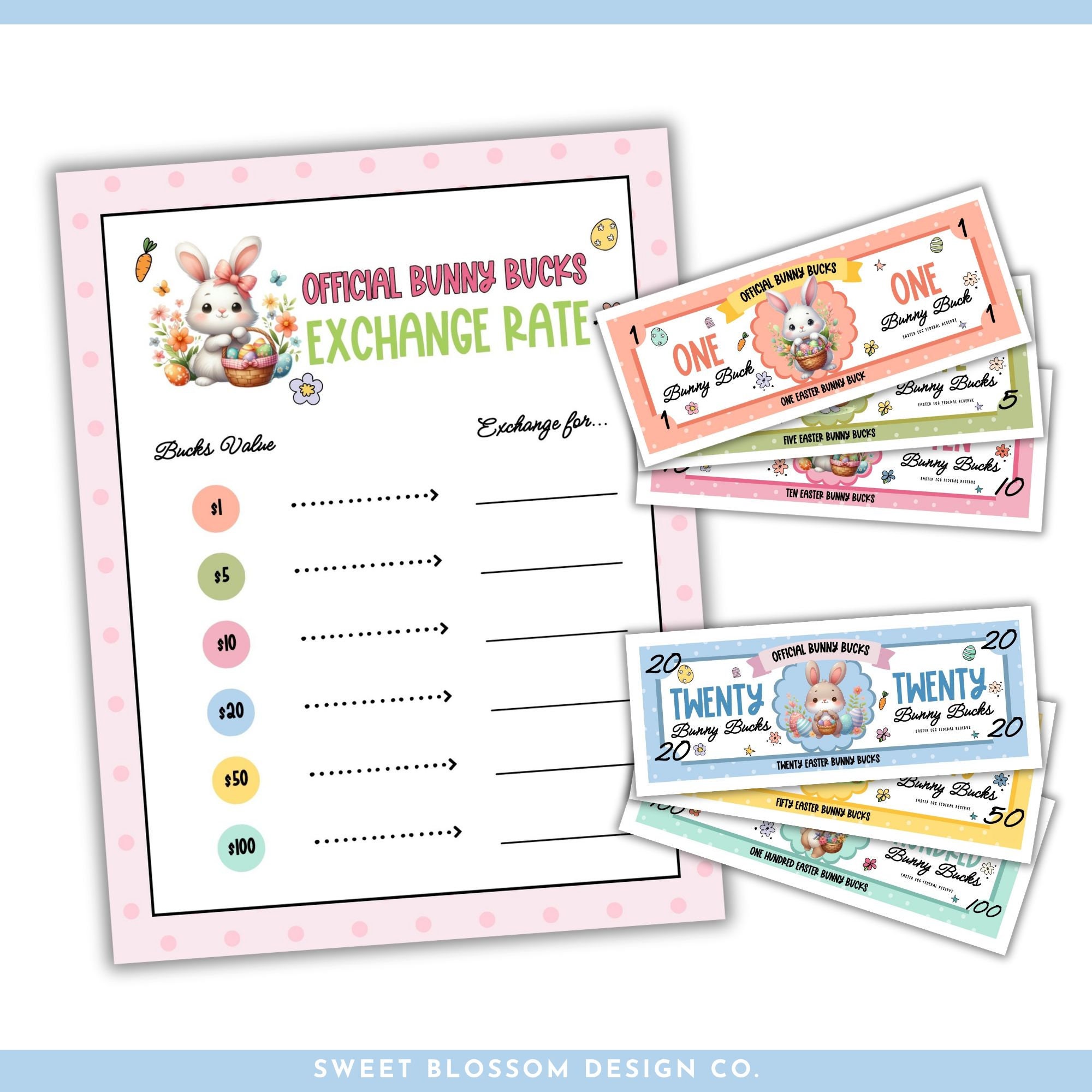 Easter Bunny Bucks Printable Template Pastels High Peaks Studios LLC