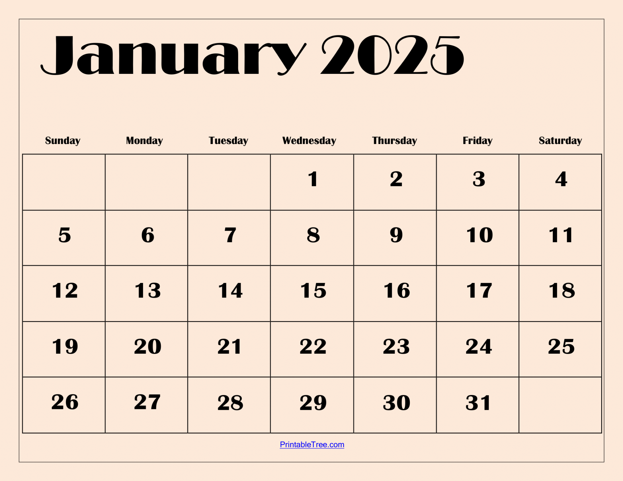 2025 January Printable Calendar Calendar 2025 Printable Calendar 2025
