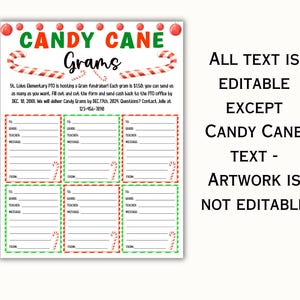 Editable Christmas Candy Cane Grams Holiday Fundraiser School Candy