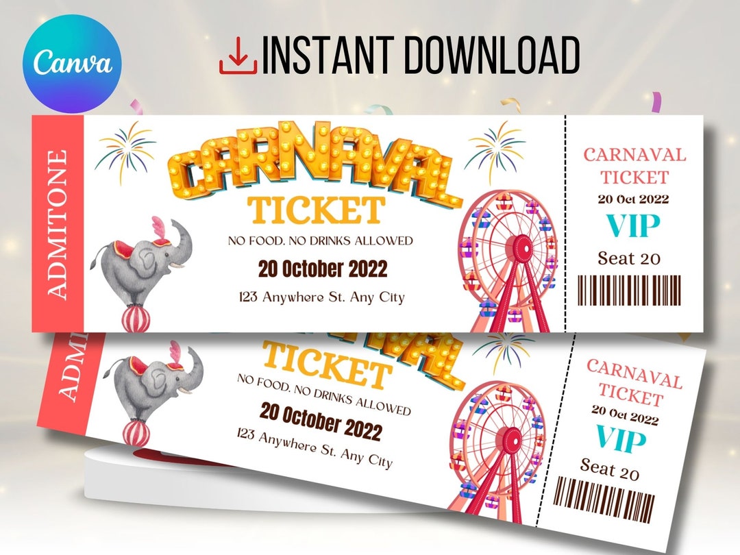 Carnival Ticket Template Instant Download Surprise Circus Gift