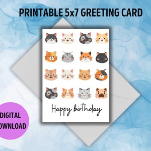 Printable Cat Birthday Card Printable Birthday Card Funny Digital