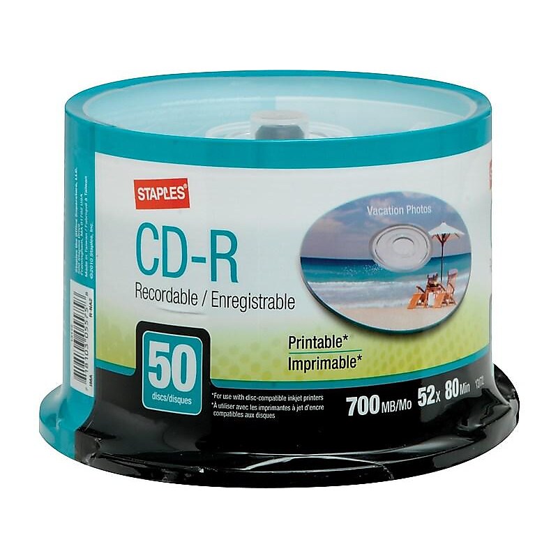 Staples 13172 52x CD R White Inkjet Printable 50/Pack image 1