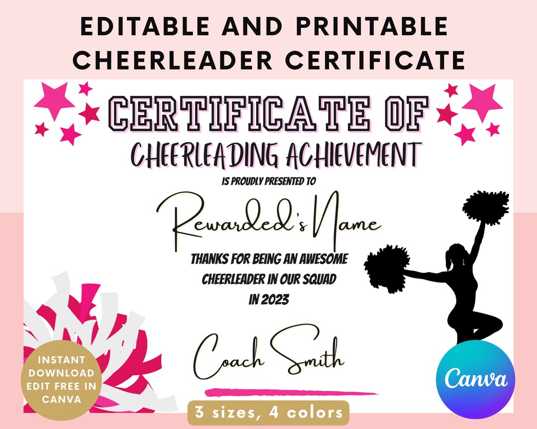 Editable Cheerleading Certificate Cheer Squad Awards Printable Cheer