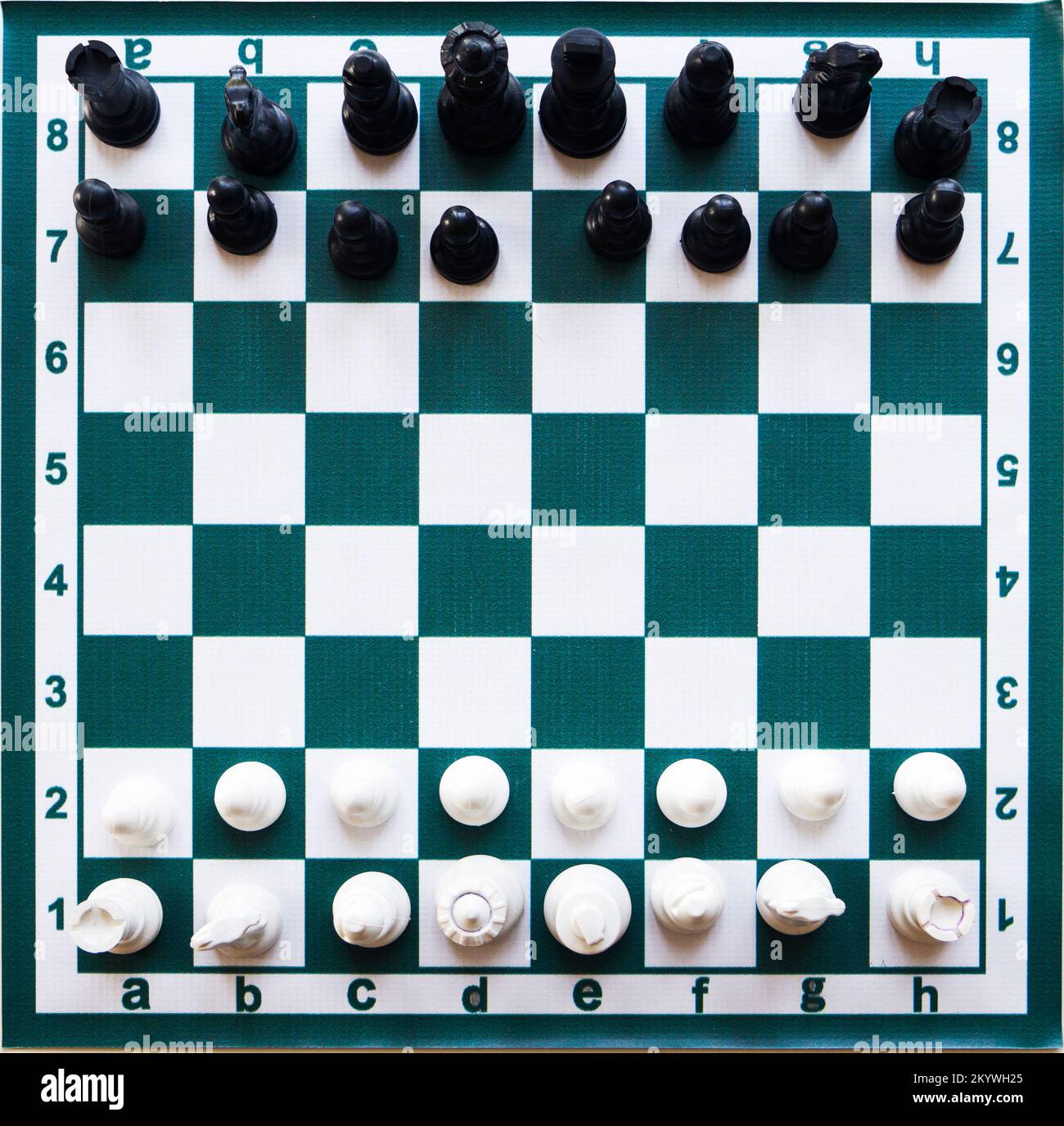 chess boards with black and white pieces on the table Stock Photo Alamy
