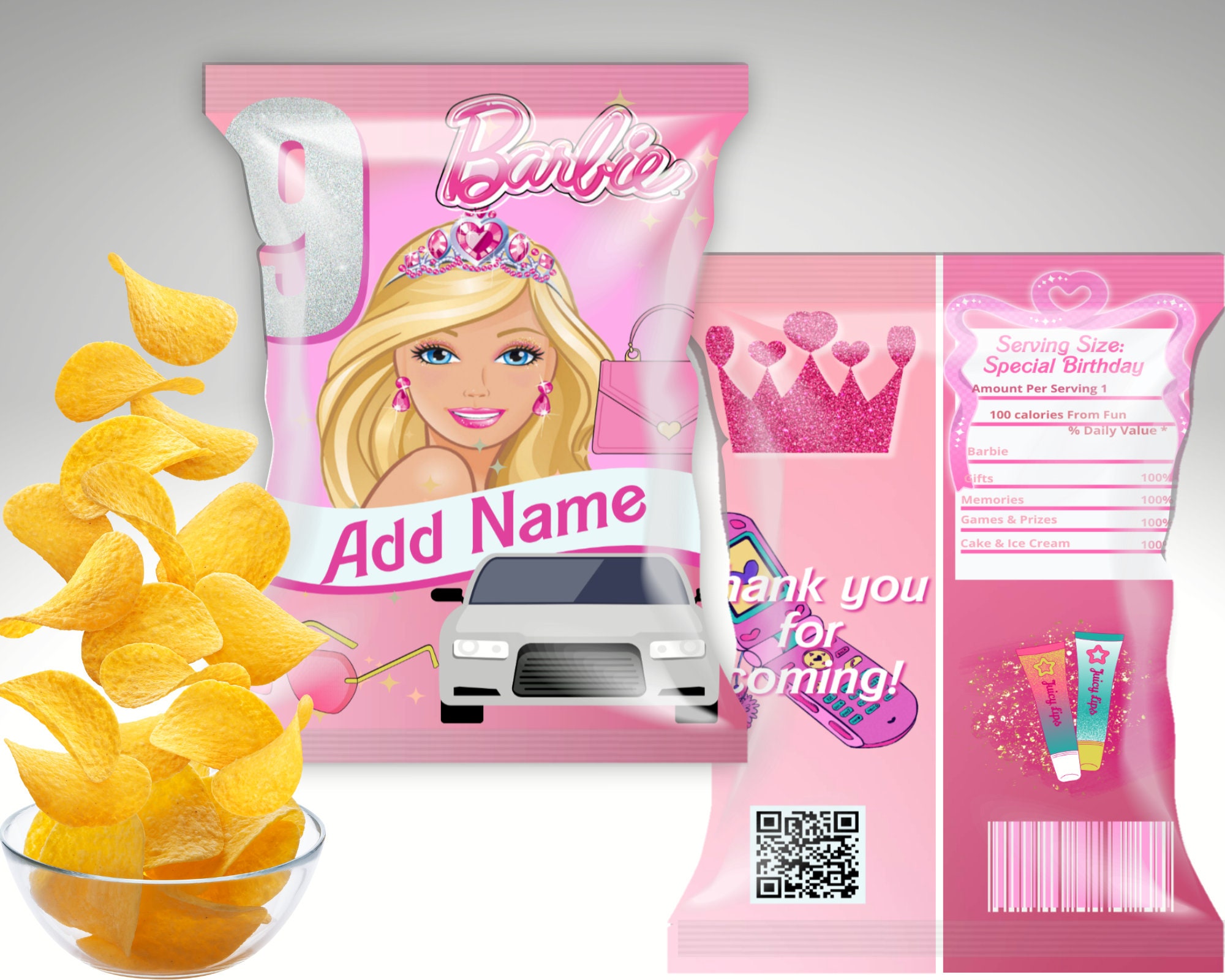 Printable Birthday Party Chip Bags Custom Treats Package Chip Bag