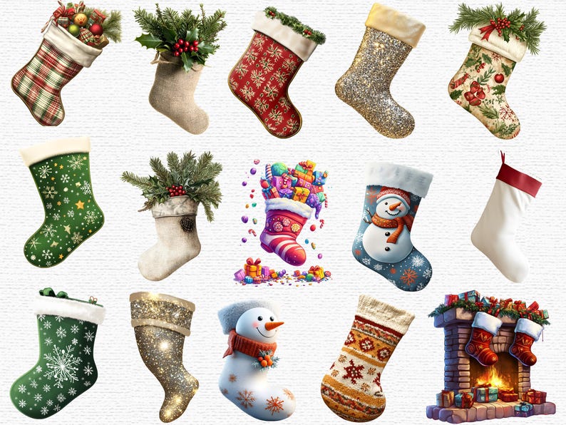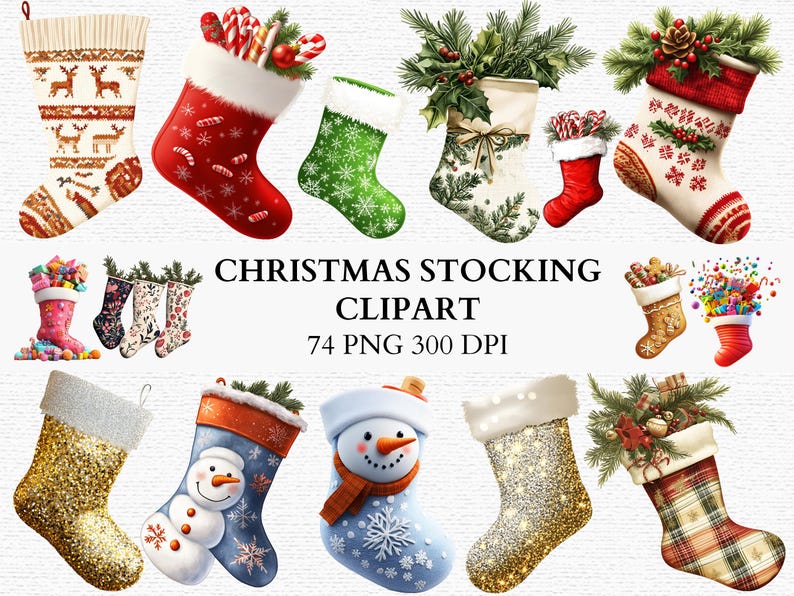 Christmas Stocking Clipart Bundle PNG Holiday Digital Download Xmas