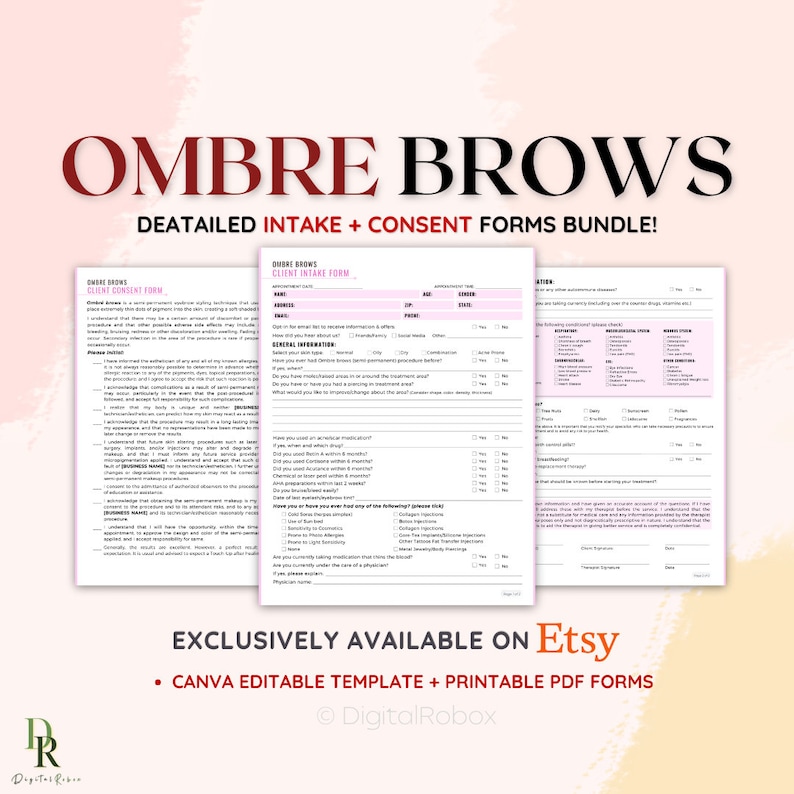 Ombre Brows Intake and Consent Forms: Esthetician Forms (editable