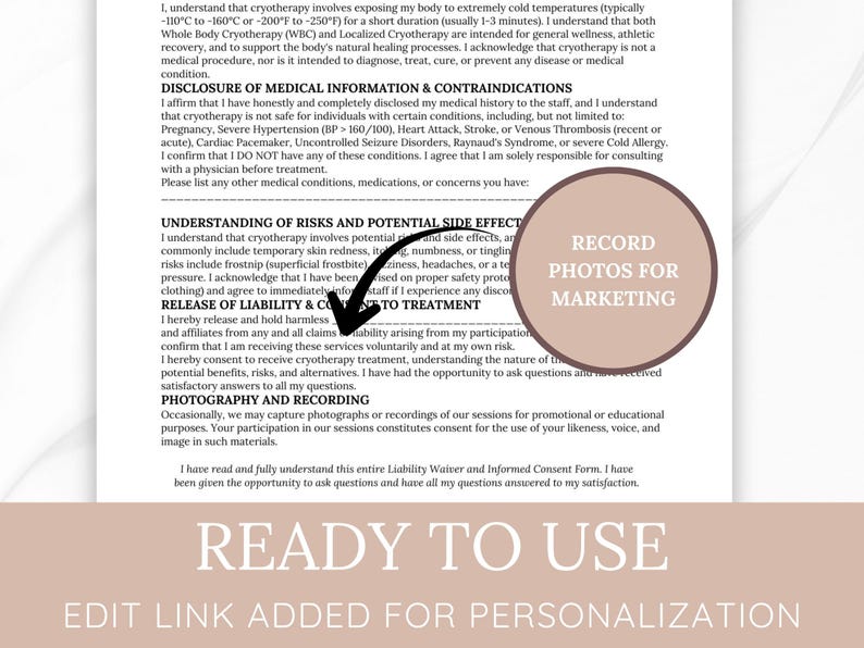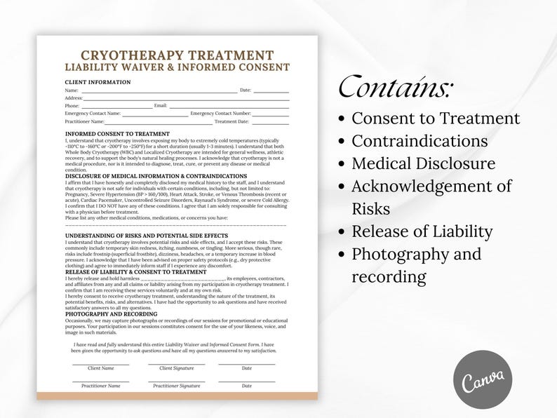 Cryotherapy Treatment Liability Waiver PDF Cryo Consent Form Spa