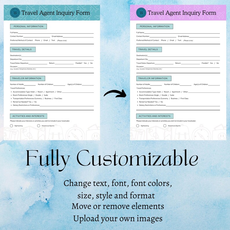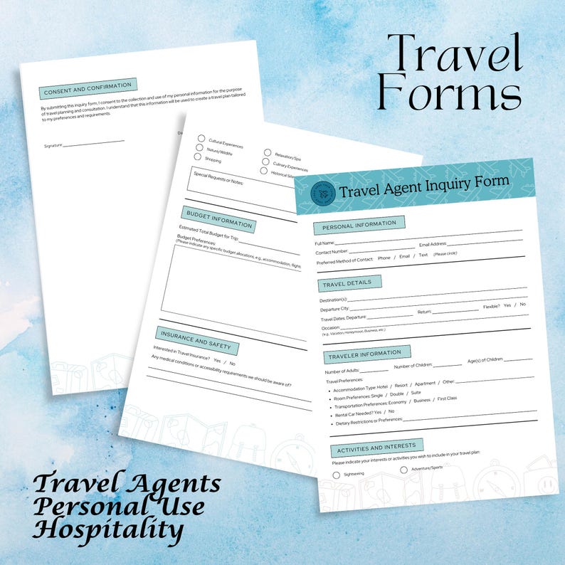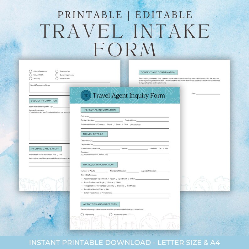 Travel Agent Intake Form Client Questionnaire Template Printable