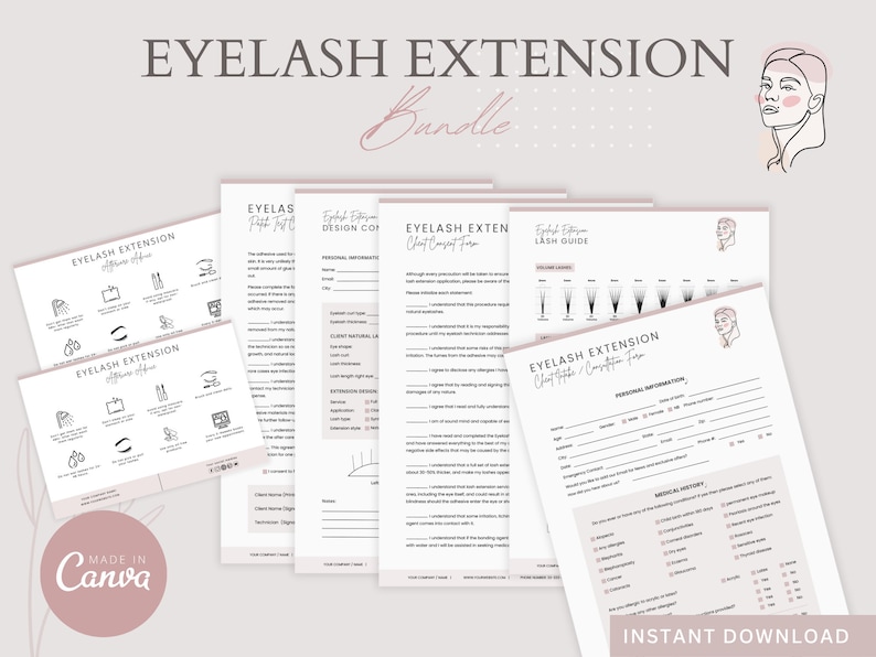 Editable Eyelash Extension Forms: Lash Tech Consultation Templates