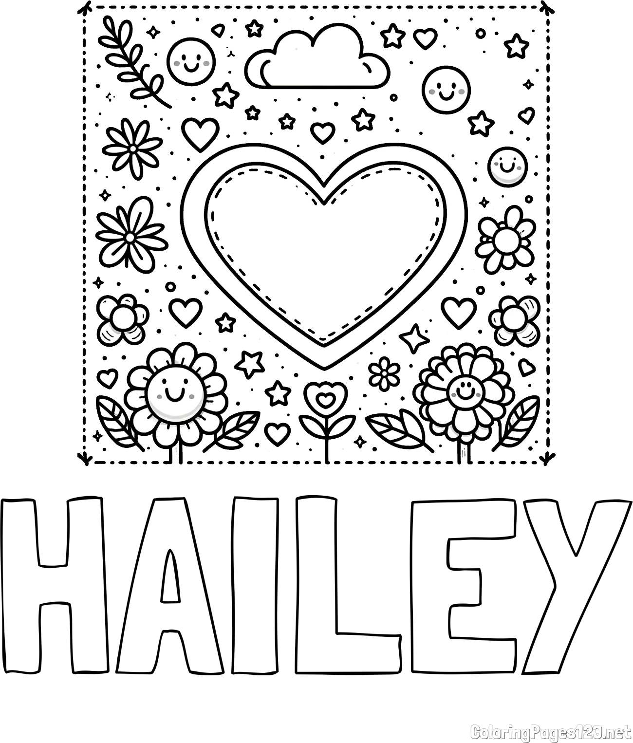 HAILEY Coloring Page and Free Printable Coloring Page of Heart and Flowers