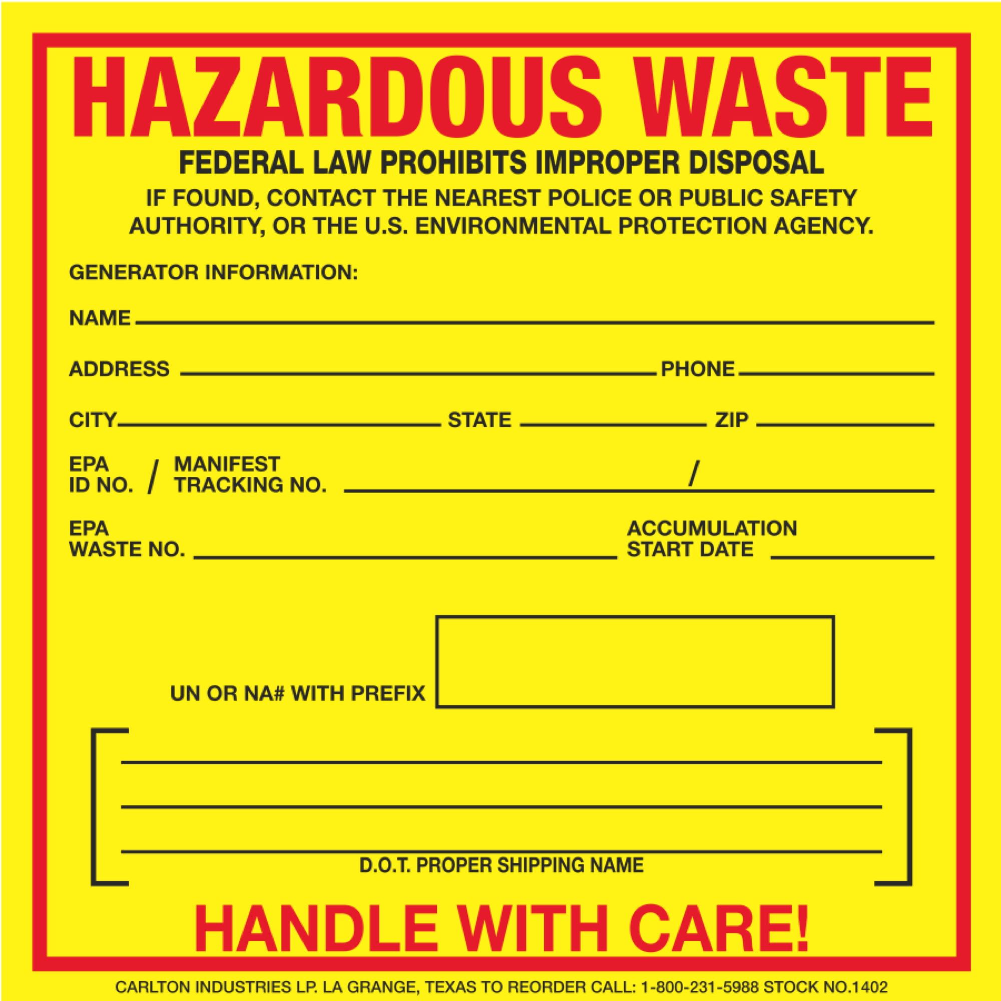 Custom Hazardous Waste Decal Generator Information Carlton Industries