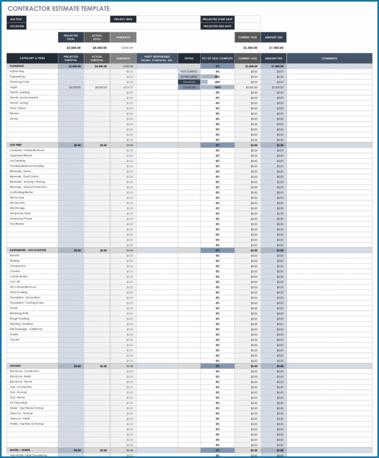 Contractor Estimate Template Free Download Web Try Smartsheet For Free