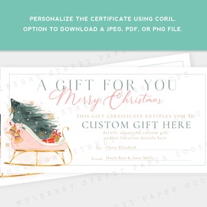 Editable Christmas Custom Gift Certificate Printable Customizable Gift