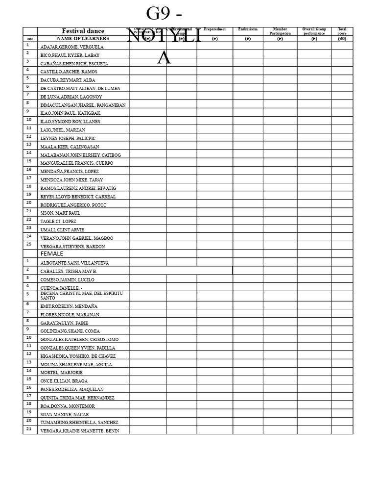Folk Dance Score Sheet PDF