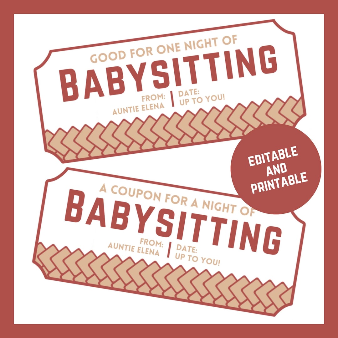Babysitting Coupon Printable and Editable Voucher Last Minute Date